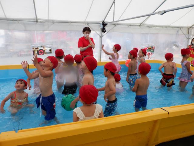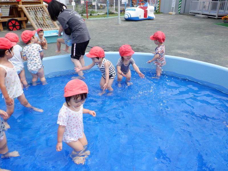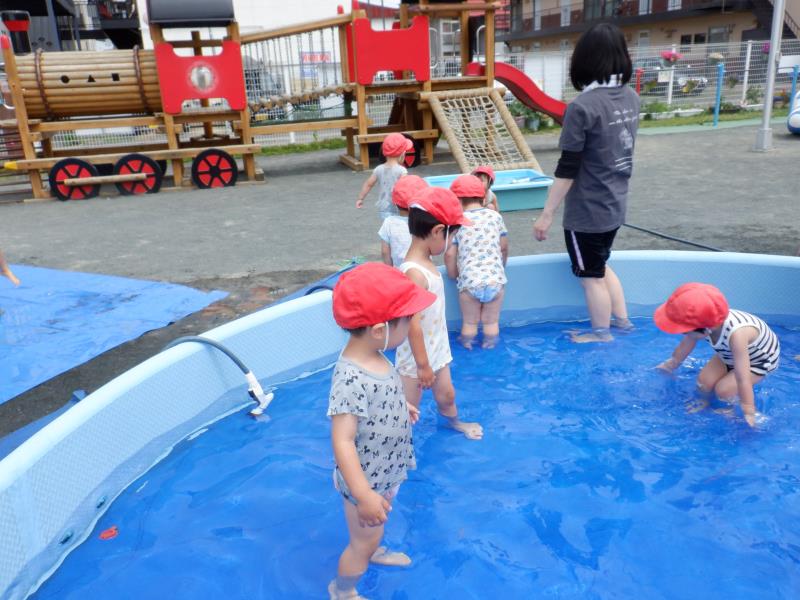 今日は初めて腰に水泳用ヘルパーを付け、水に浮く経験もしてみました。お友達に手を引いてもらったり、自分で浮いてみたりと、笑い声いっぱいでした♪