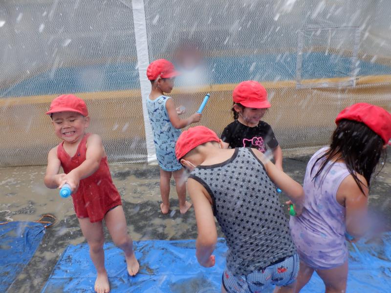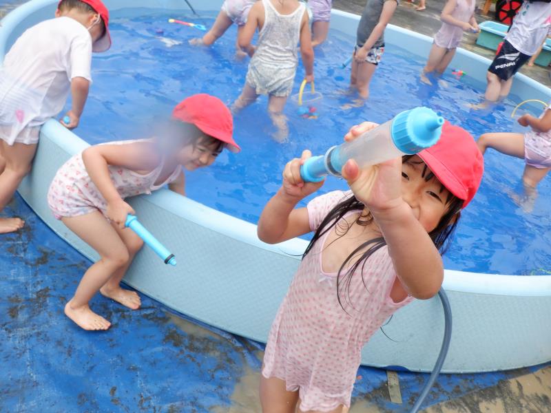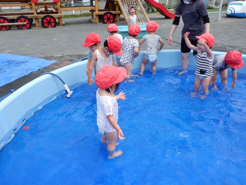 お水の中に入ることが嬉しくて、足をバタバタ水しぶきをあげ喜んでいました!