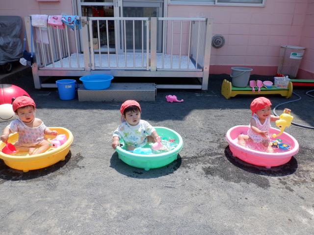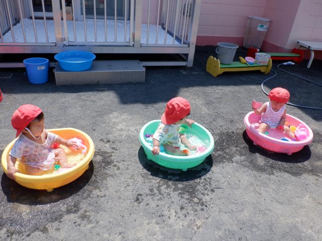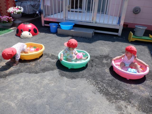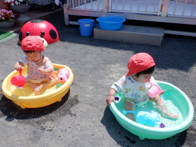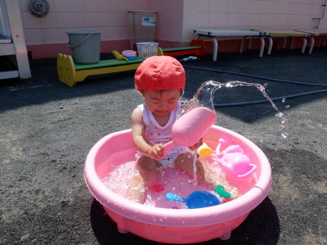 前回よりも慣れた様子で、足をバタバタ動かし水しぶきをあげたり、顔に水がかかっても全然平気な様子でした。嫌がることもなく、楽しんでいますよ♪