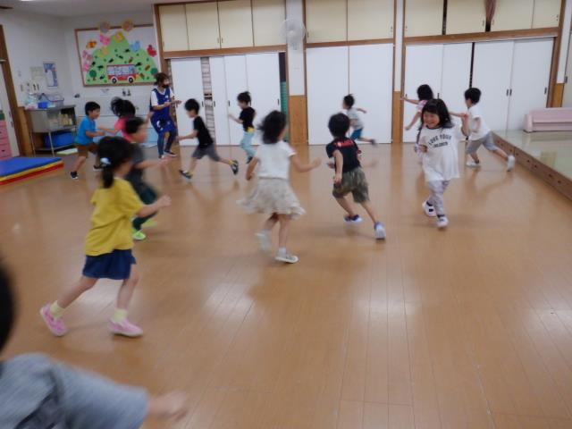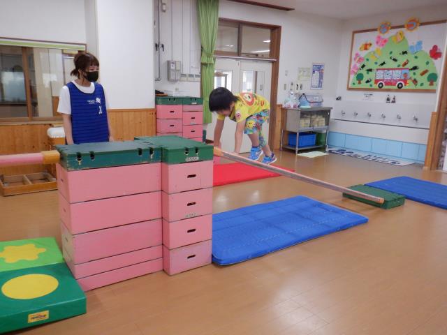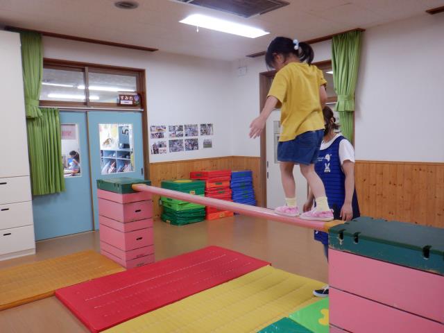 ゆりさんは、遊戯室でリズム遊びをしてから、運動遊びをしました。