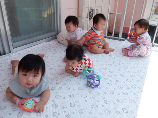 給食後は、バルコニーで外気浴。風にあたって気持ち良く過ごしていましたよ。