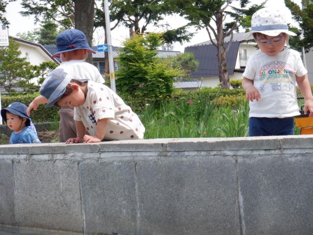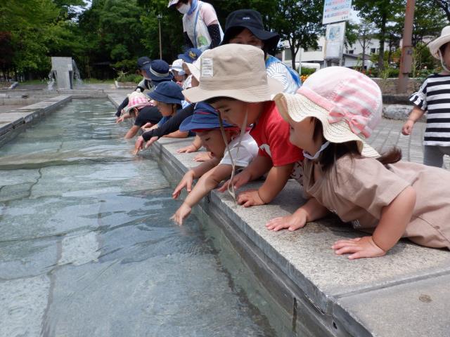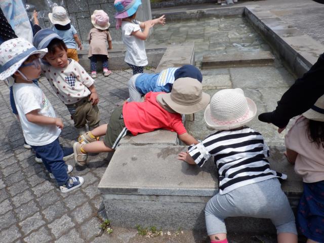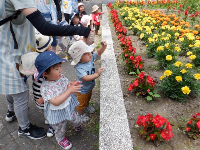 噴水を興味津々で見たり、きれいなお花を眺めたりと楽しいお散歩となりました。