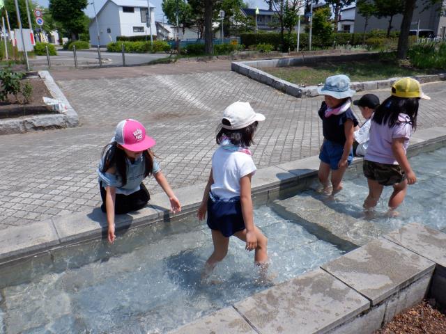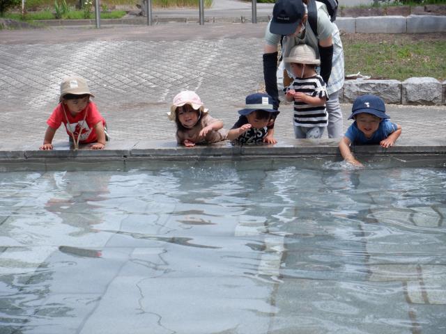 お水にふれて大喜び!手でパシャパシャして、涼みましたよ。