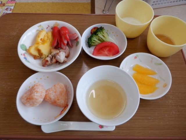 給食は、ももさん特別メニュー!おにぎりやタコさんウインナーなど、お弁当のように作ってもらいました。美味しかったね♪