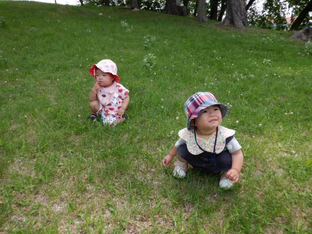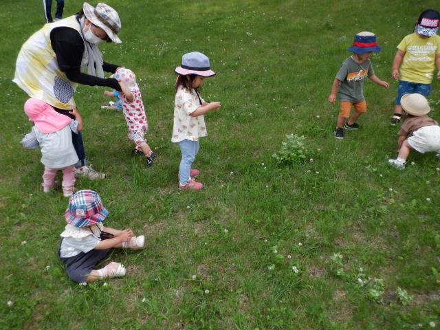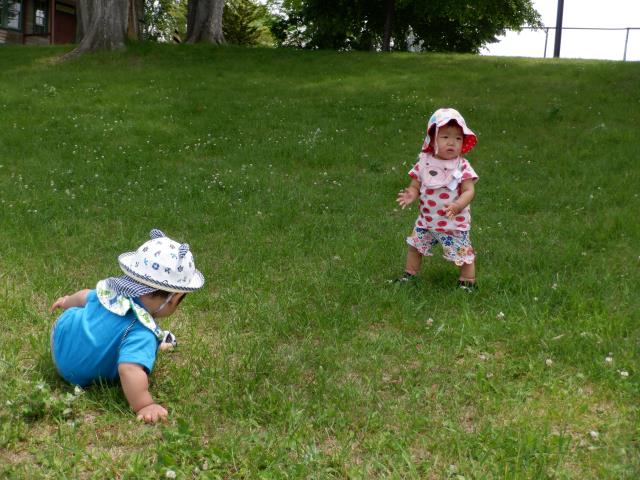 起伏のあるところを自由に歩いたり、草にふれてみたりと、自然の中で過ごしてきました。