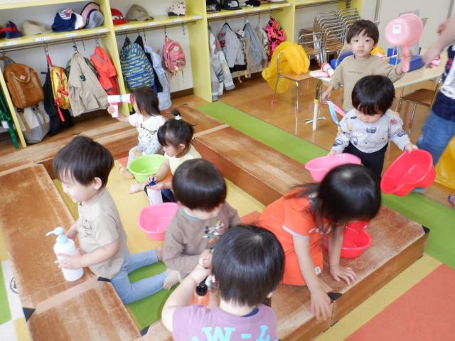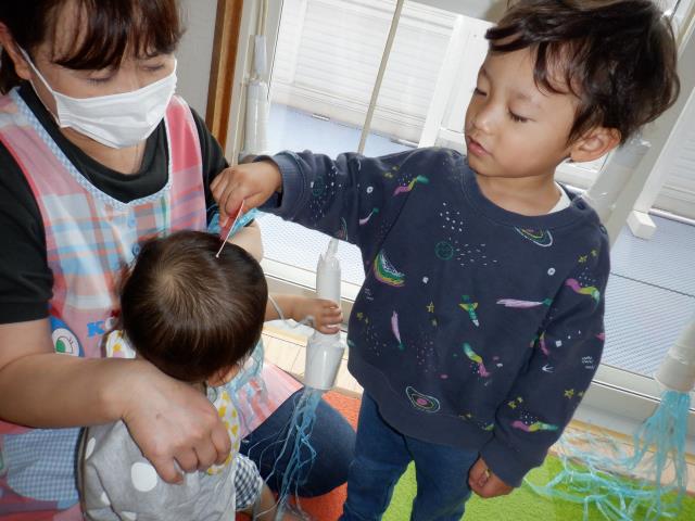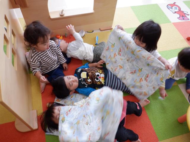 お布団を敷いて、お友達と一緒におやすみなさいと可愛いらしく眠る真似もしていましたよ。