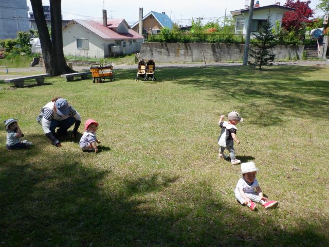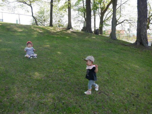 ゆりさんも美芳第一公園まで行きました。蝶々を追いかけて見事捕まえたり、坂から転がって遊んだりと元気いっぱい!