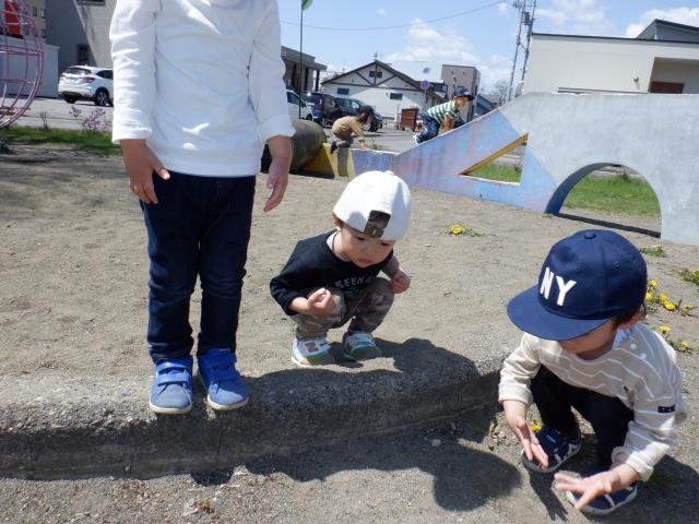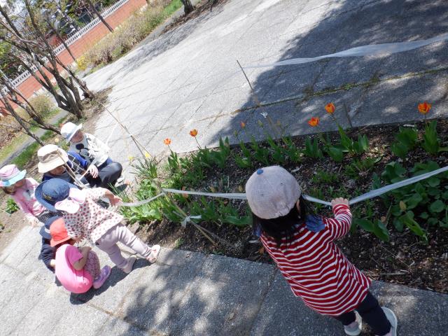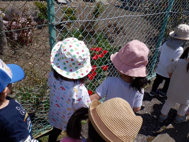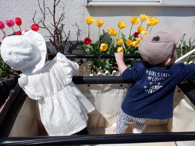 チューリップの花やアリを発見して、指差ししたり声をあげて教えてくれましたよ!