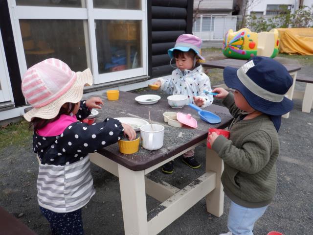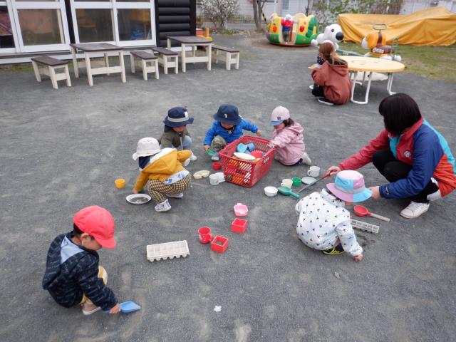 ちゅうりっぷさん、園庭で初めて砂あそびをしました!