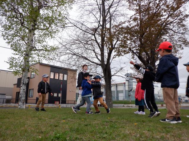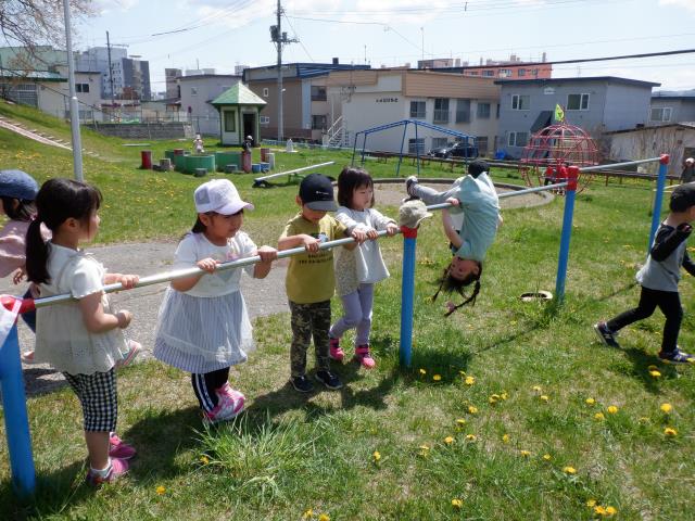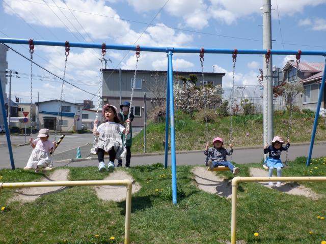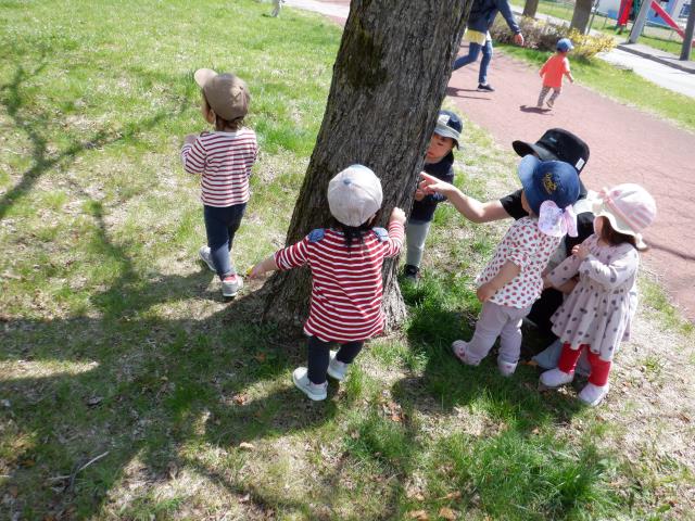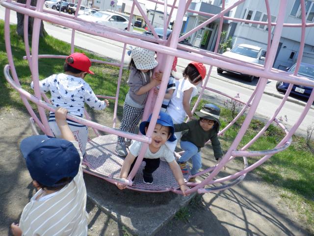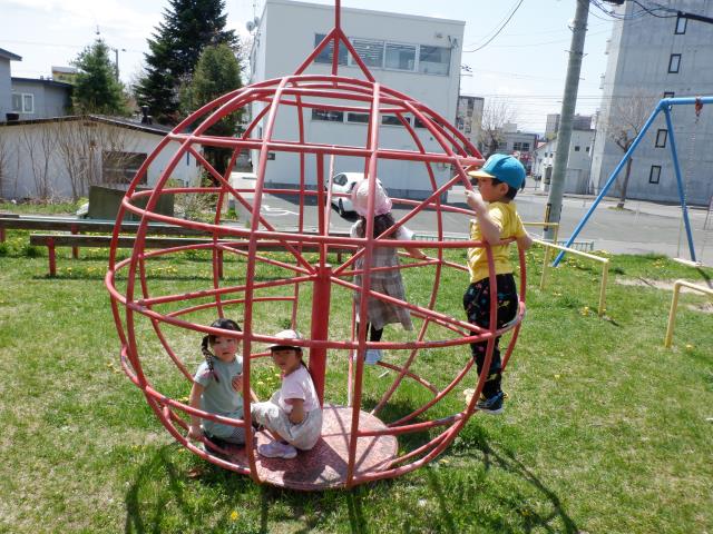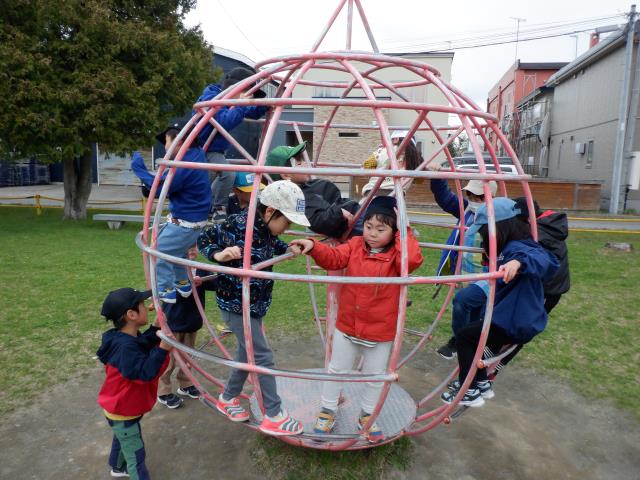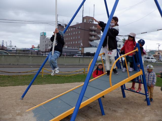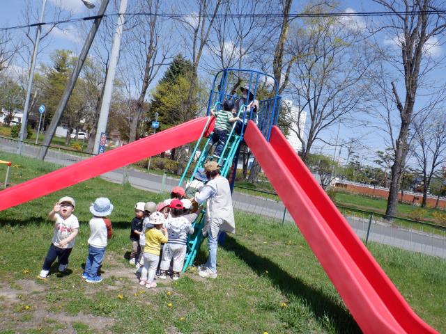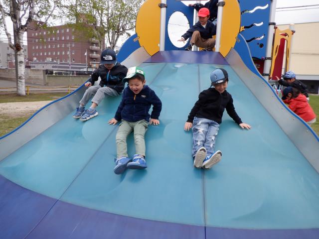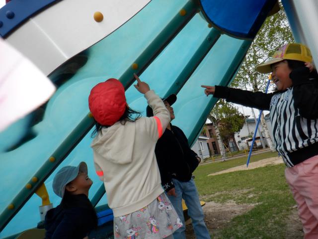 遊具でもたくさん遊び、すべり台の下から滑っているお友達の影を見て、「ペンギンみたいだね~!」と会話も聞こえてきました。