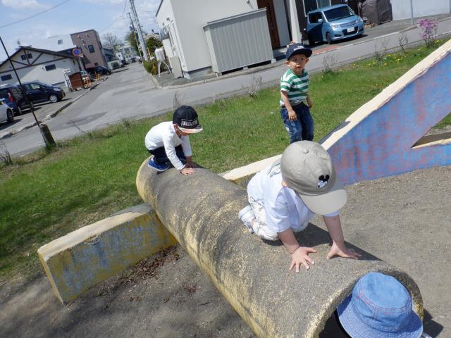 順番を守って遊具で遊んだり、長い土管をくぐったり、高い所へ上ることにチャレンジするお友達もいましたよ。