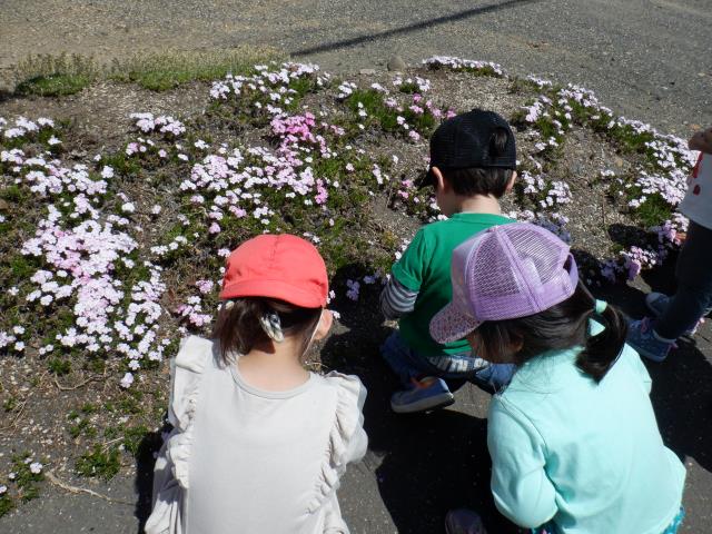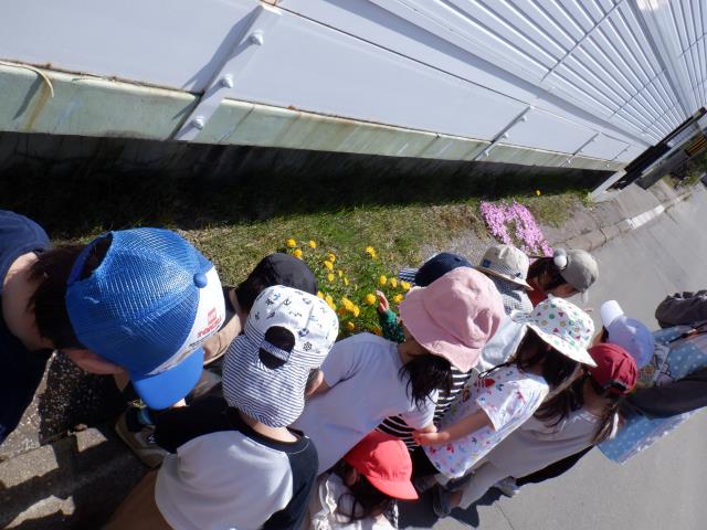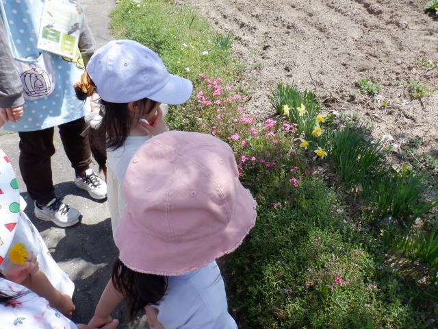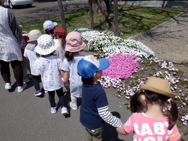 さくらさんは、お花を探しに園の周りをお散歩しました。