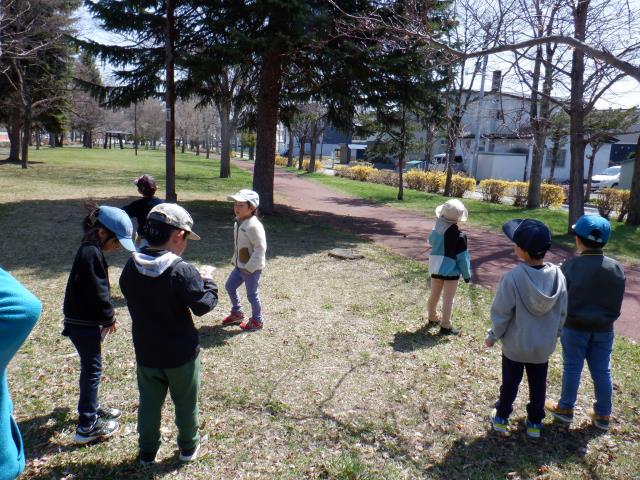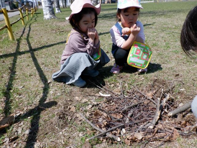 枝が落ちているところでたき火・やきいもごっこを楽しむお友達もいましたよ。