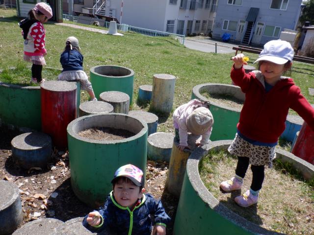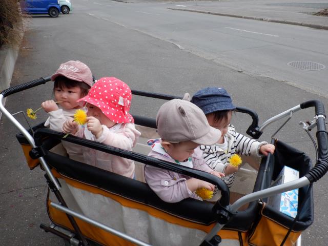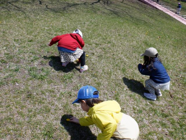 たんぽぽのお花も発見して、嬉しそうに摘んでいました。