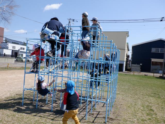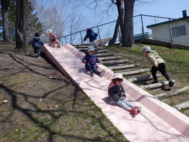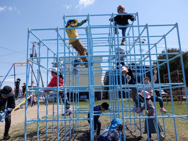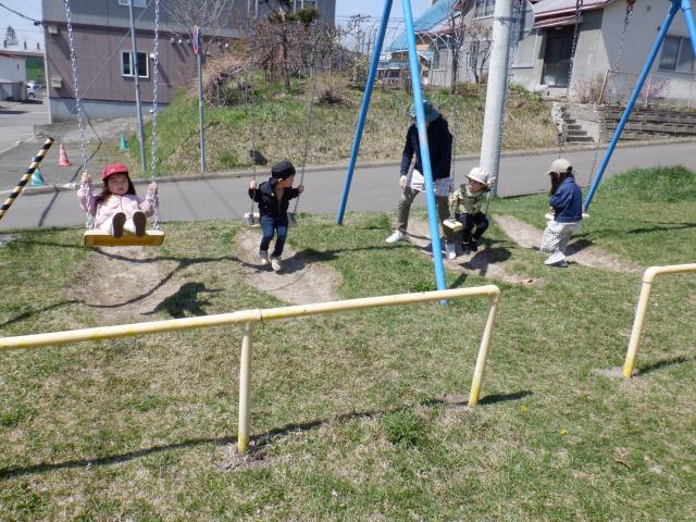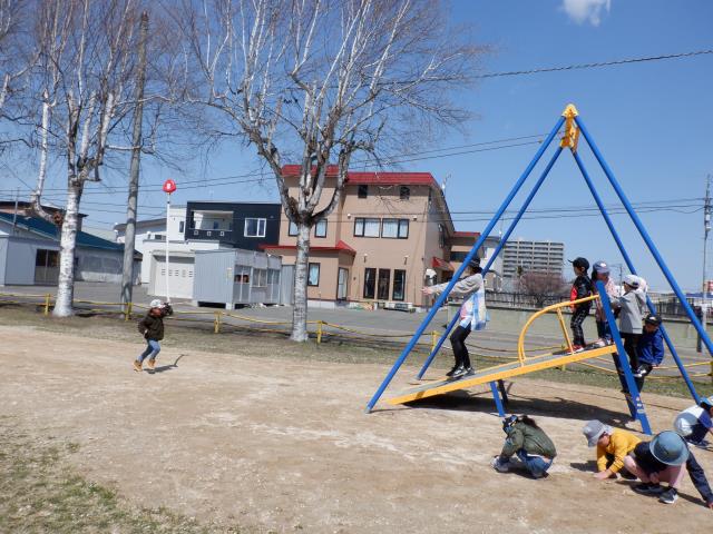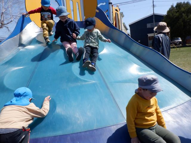 ブランコやすべり台、シーソーの遊具でもたくさん遊び、お友達と一緒に楽しむ姿がみられていました。