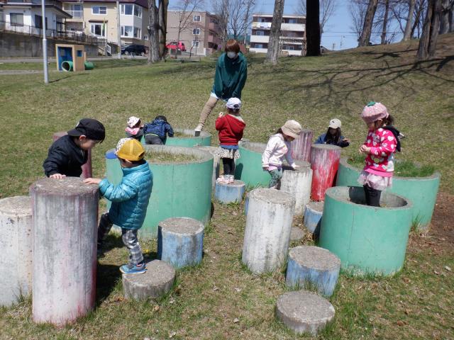 すみれ組になって初めてのしらかば公園、久しぶりに行くと新しい遊具になっていて、すみれさん大喜び!
