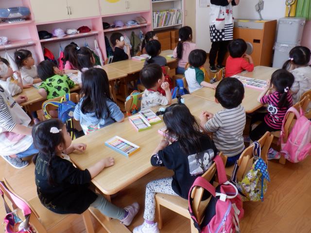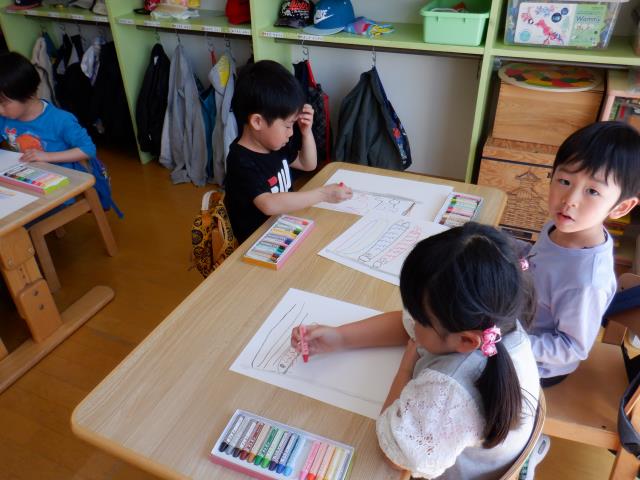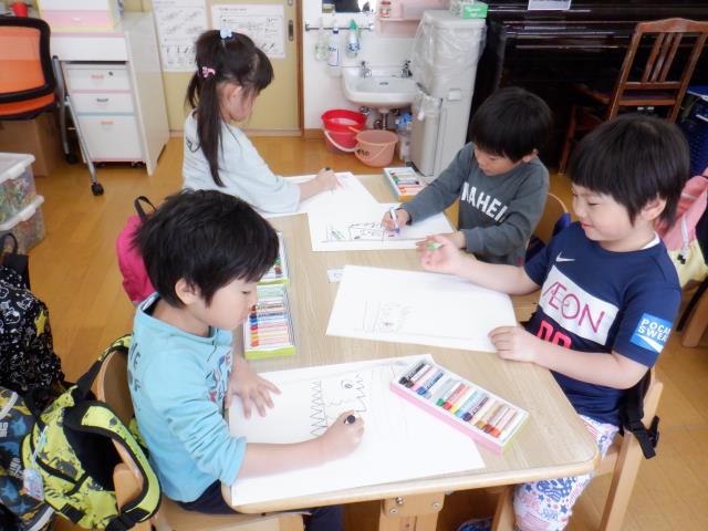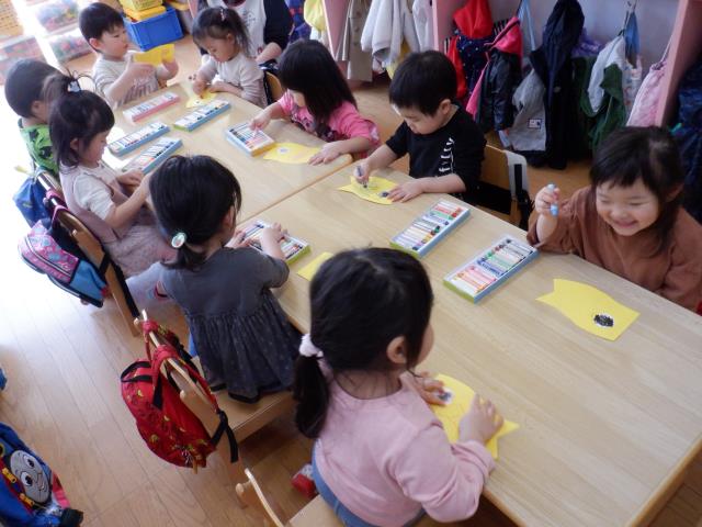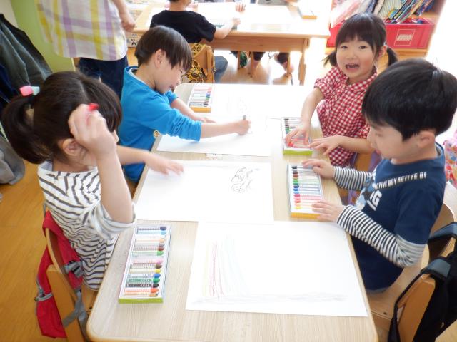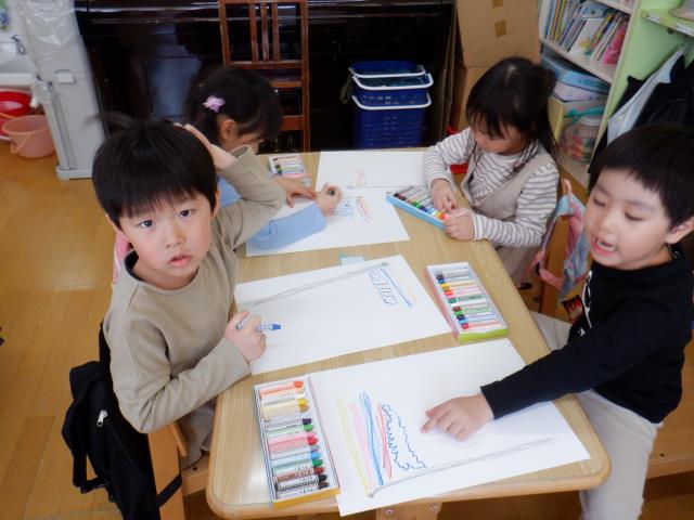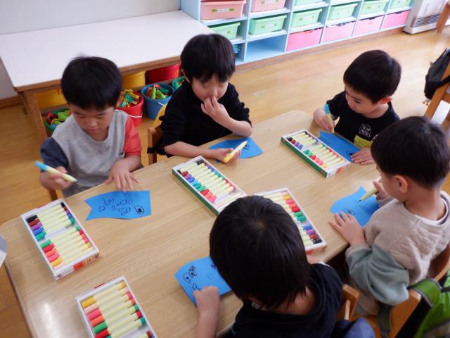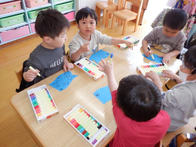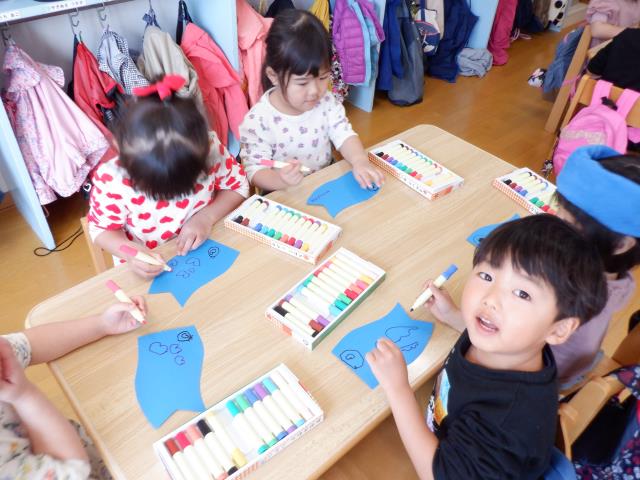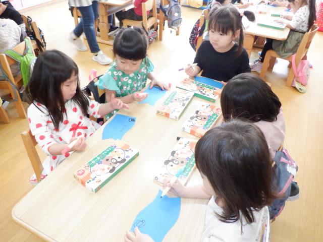 絵を描いた後は、こどもの日の集いで飾るこいのぼり作り。