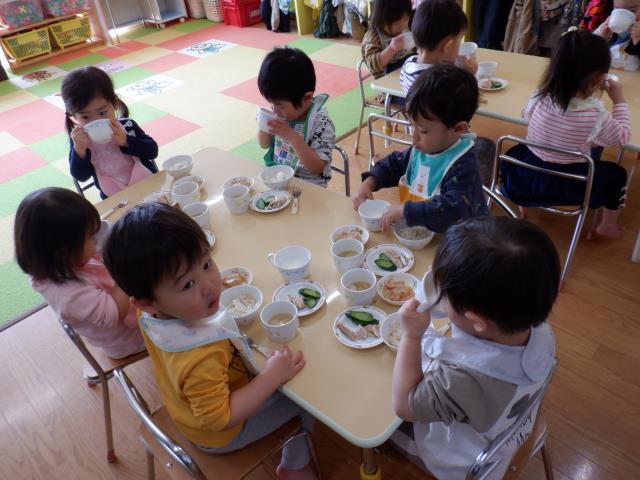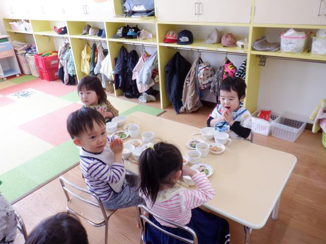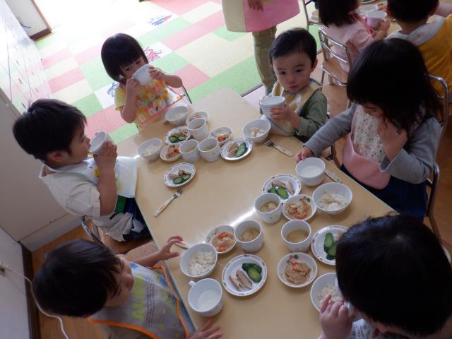 給食も「いただきます!」のご挨拶を上手にして、毎日美味しく食べていますよ!