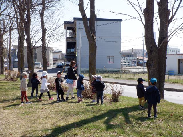 たんぽぽさん、避難訓練後はお散歩へ行ったり園庭で遊びました。