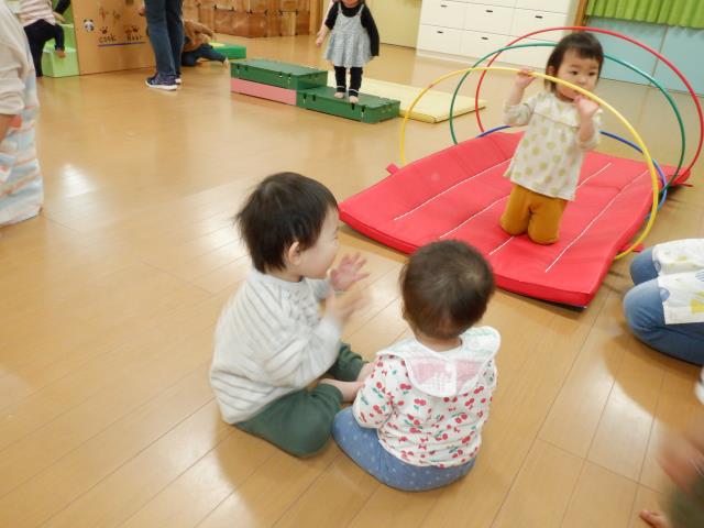 ももさんとちゅうりっぷさん、お遊戯室で遊びました。