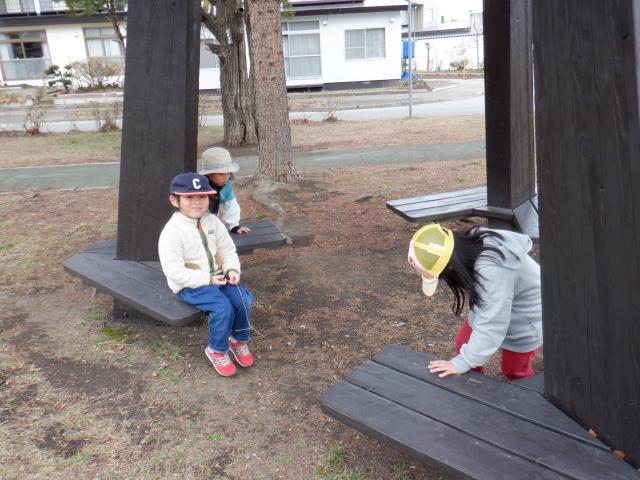 園長先生の放送を聞いてから、園庭まで避難しましたよ。