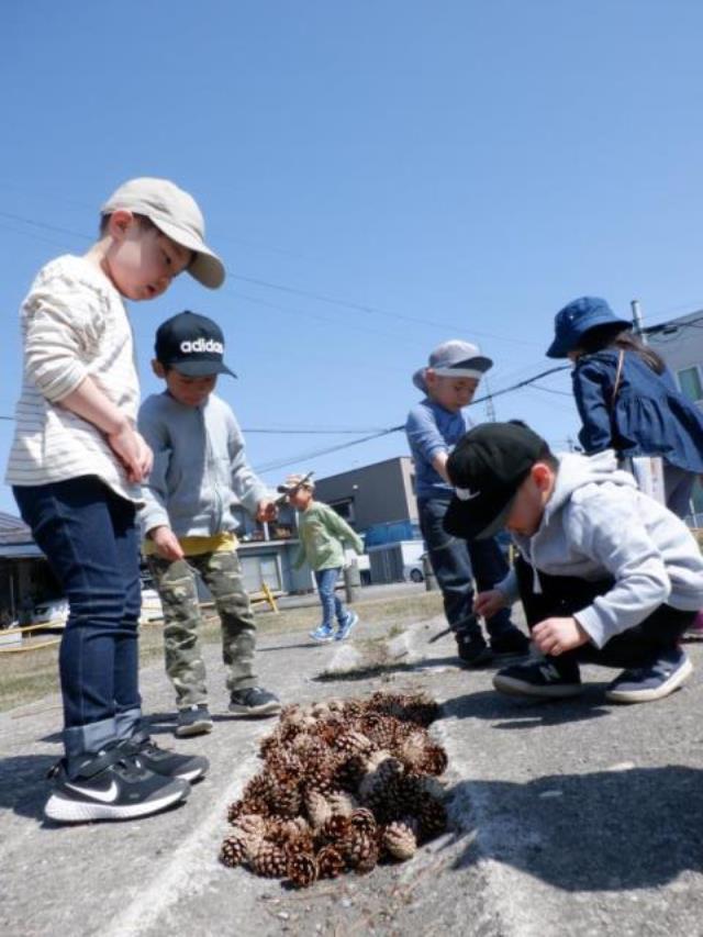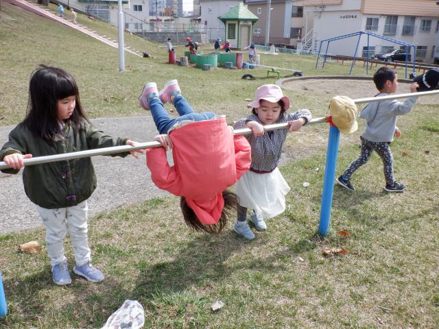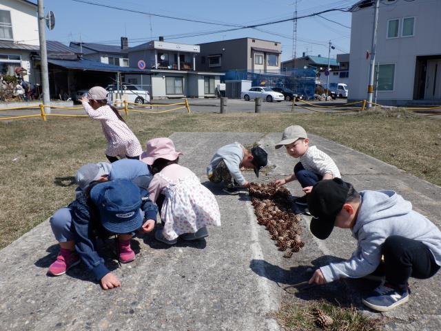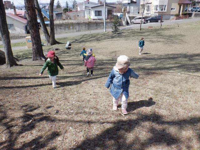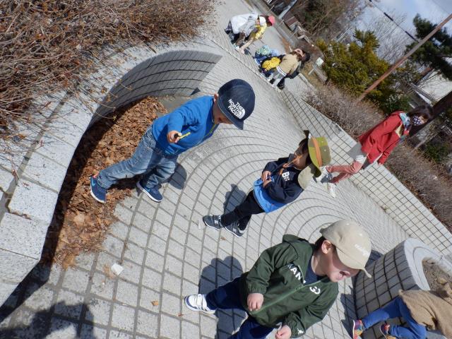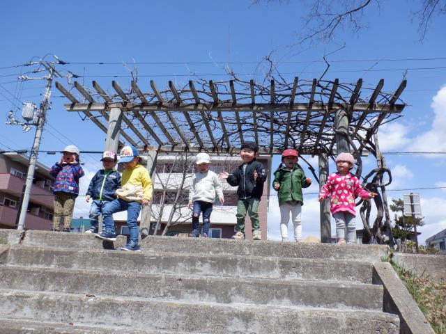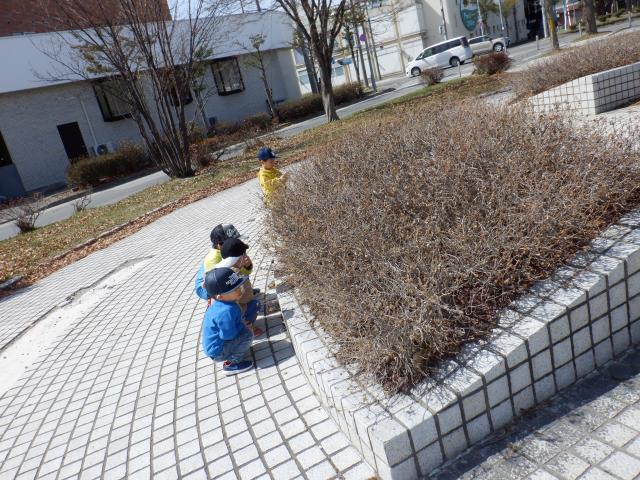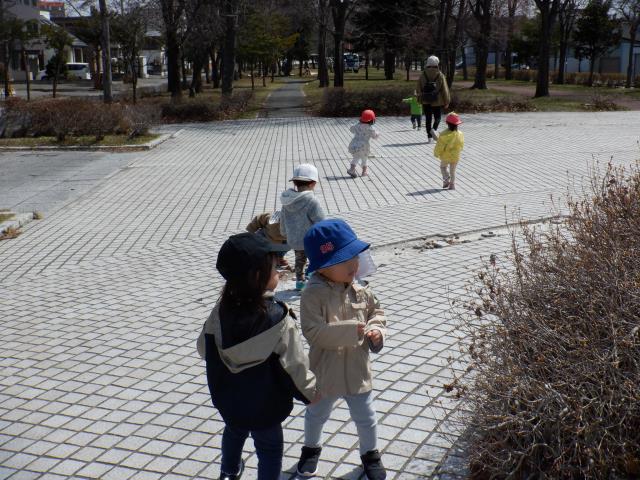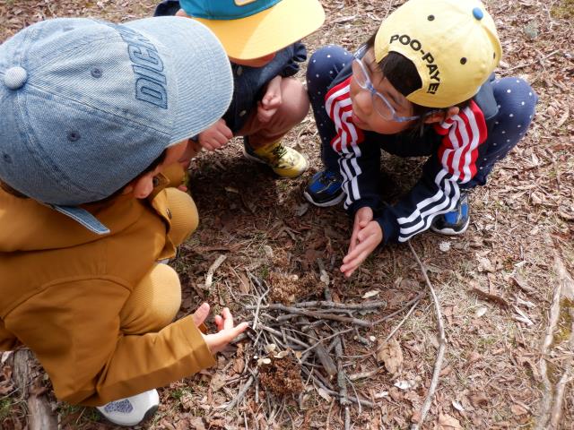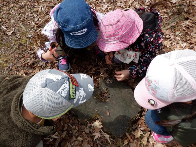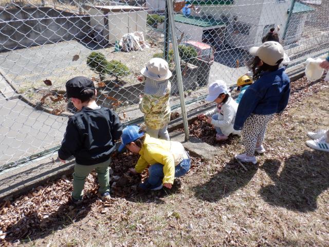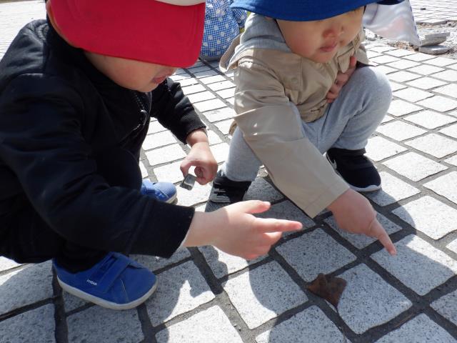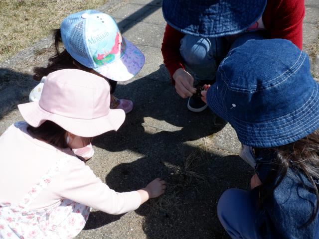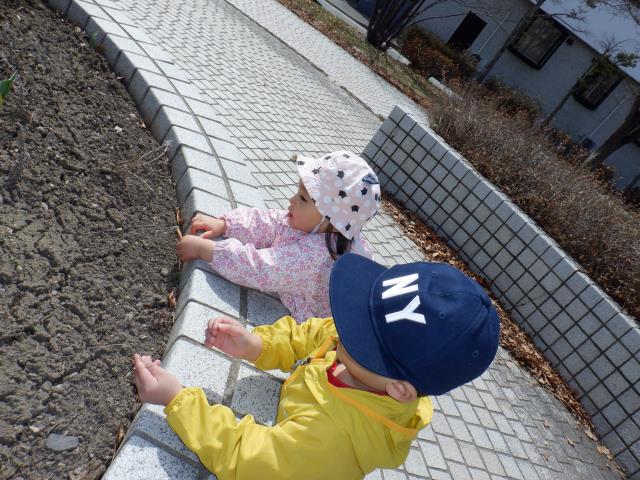 アリを発見して観察したり、チューリップの芽を見つけて喜んでいました。早くきれいなお花が見たいですね。