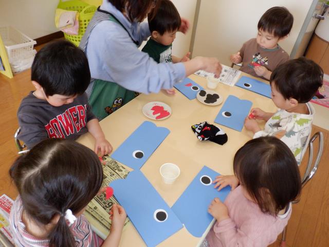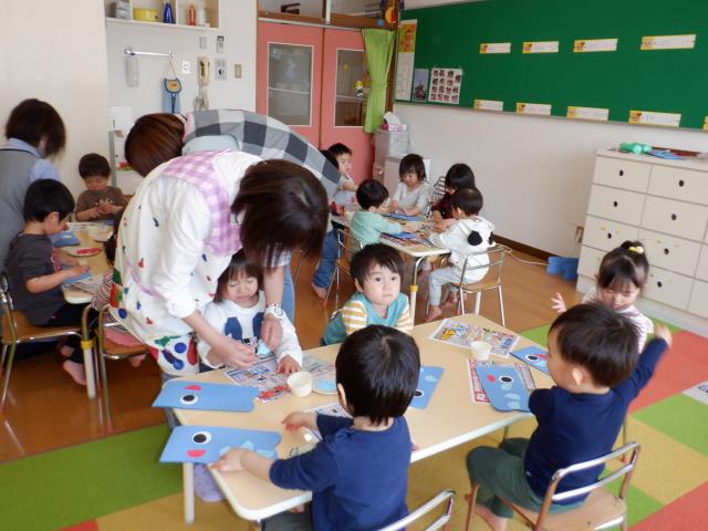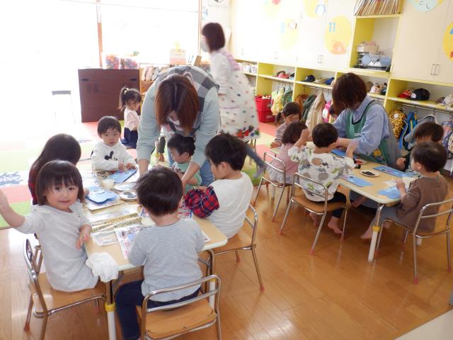 たんぽぽさん、こいのぼり製作でのり付けをしました!