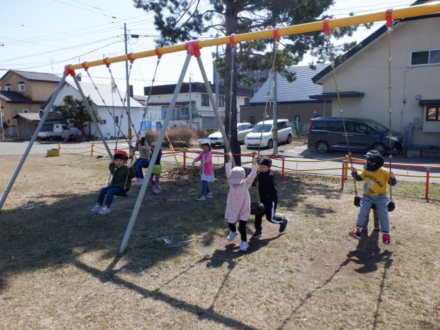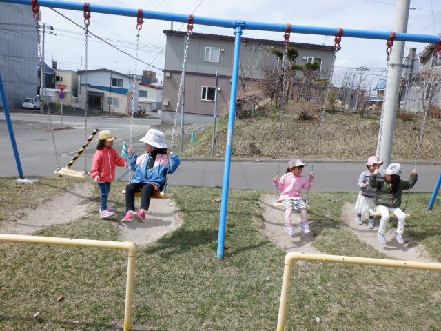 ブランコやシーソー、鉄棒などの遊具でお友達と遊び、アリを見つけて捕まえたお友達もいました!