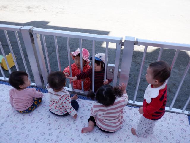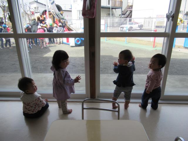 ももさんのお友達は、ちゅうりっぷ組のお部屋から見学です。