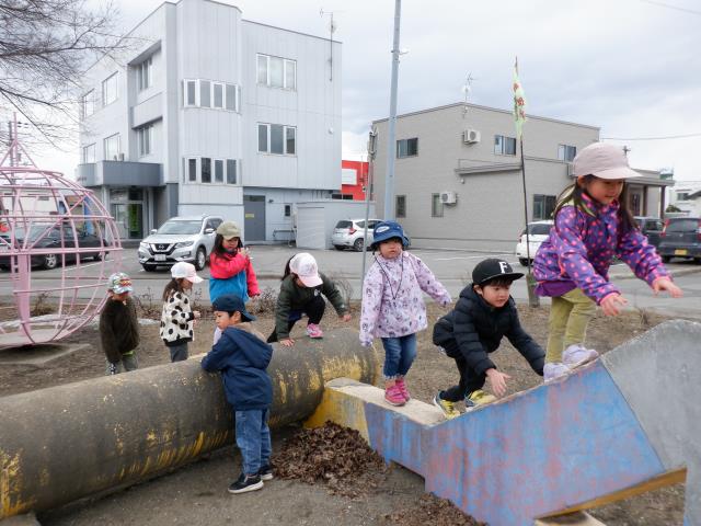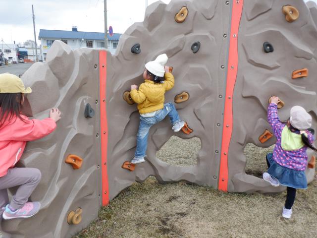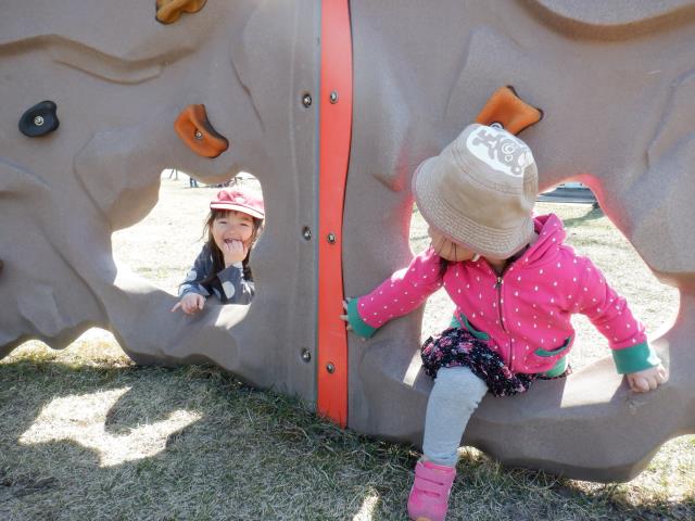 本町第一公園で高さのある塀に上ったり、遊具で遊んだりと元気いっぱい!