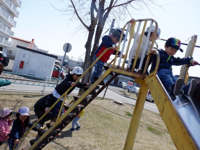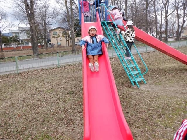 順番を守ってすべり台を滑ったり、走って元気に遊んでいました。
