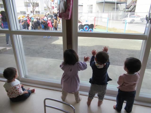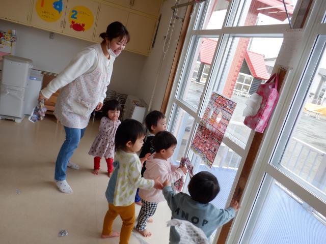 昨日あげたこいのぼりに「いってきま~す!」と元気に手を振って出発しました。