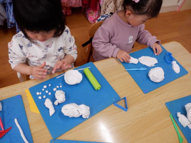 さくら組になって初めての粘土あそび!