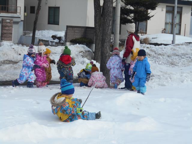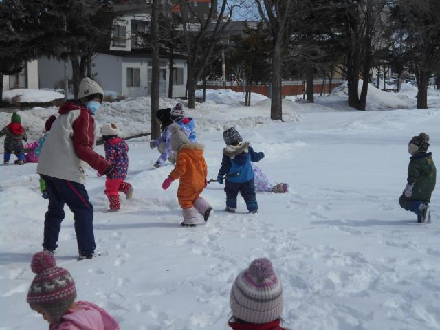 コースのようになっていたところをマラソンして走り、雪合戦のように先生と投げ合いもしました。