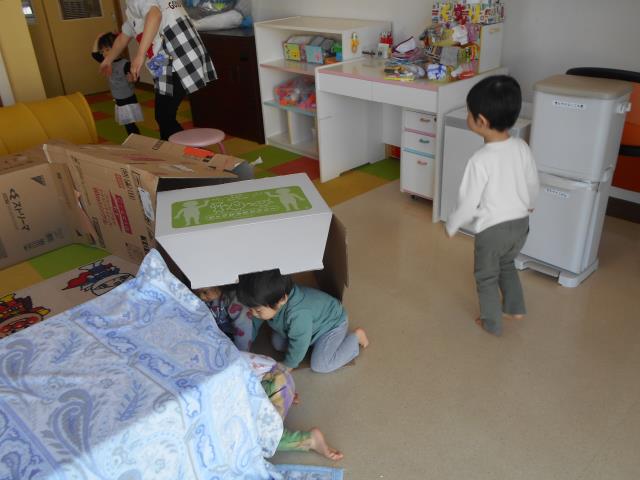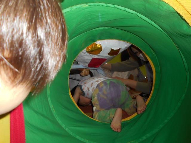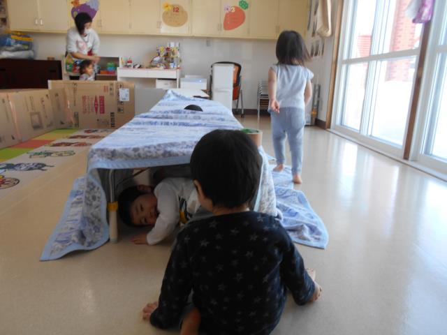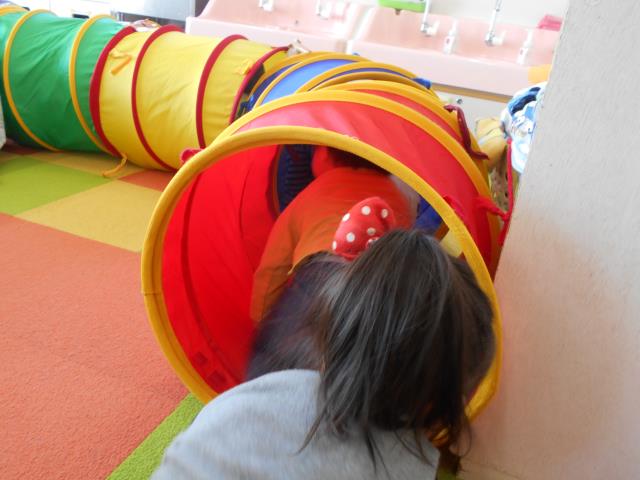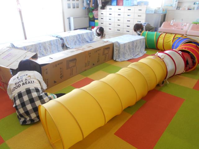 トンネルくぐりやマットで体を動かして、いっぱい遊びました。