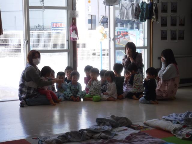 今日は、午睡中に避難訓練がありました。
