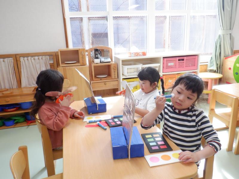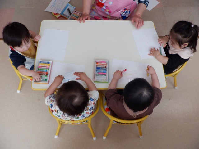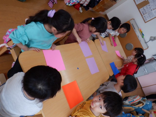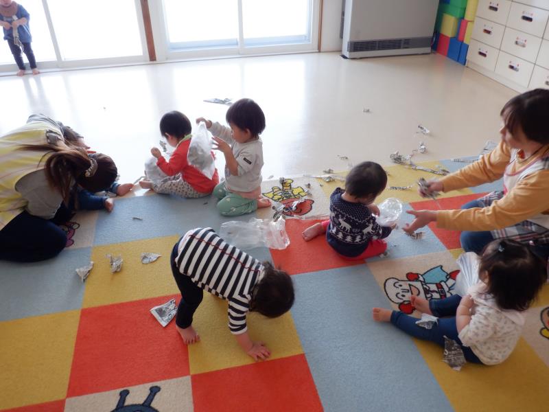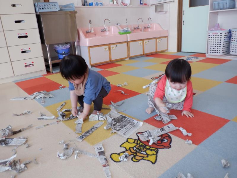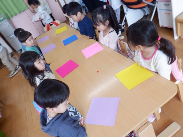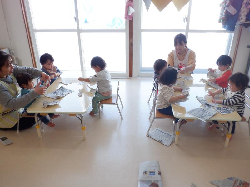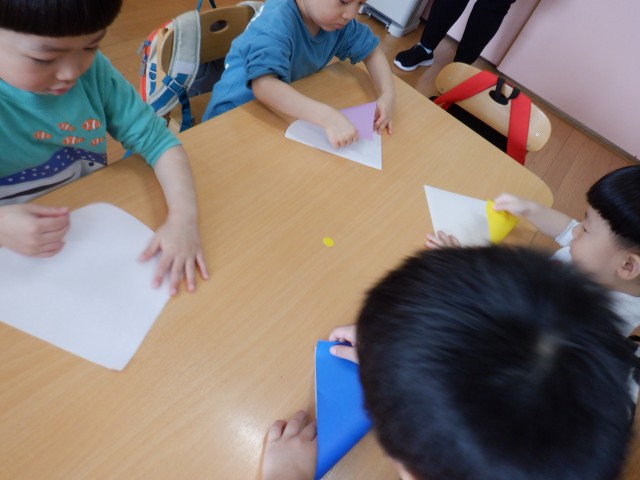 椅子に座って、紙遊びをしたり