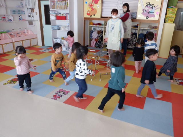 ちゅうりっぷさん、お遊戯室にて。