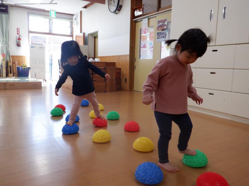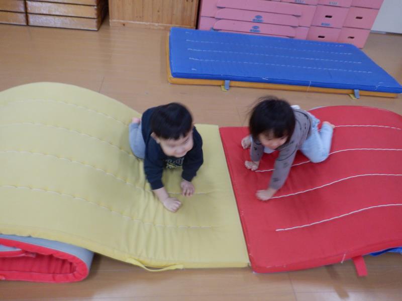 リズム運動、平均台、マットのお山、