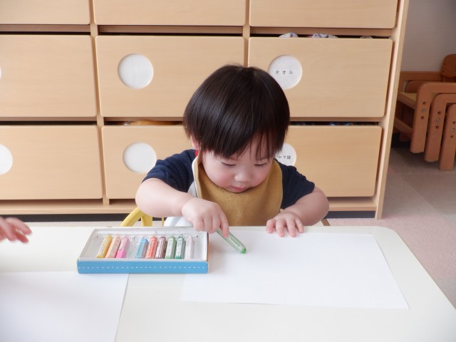 画用紙いっぱいにクレヨン使って