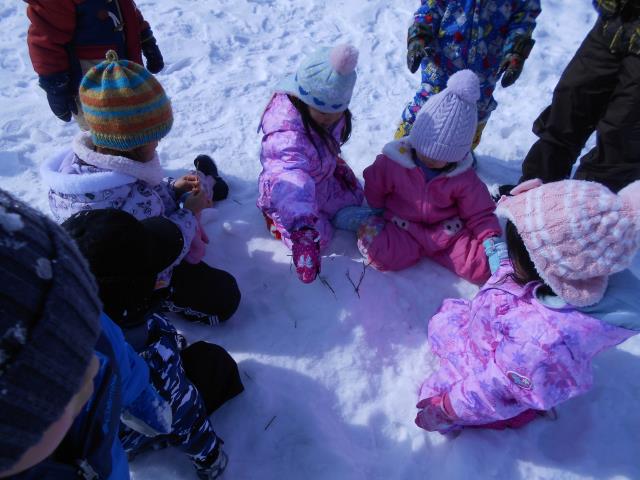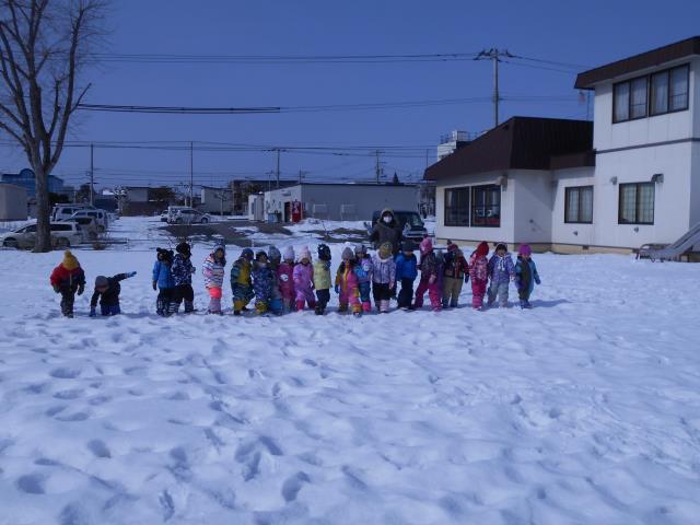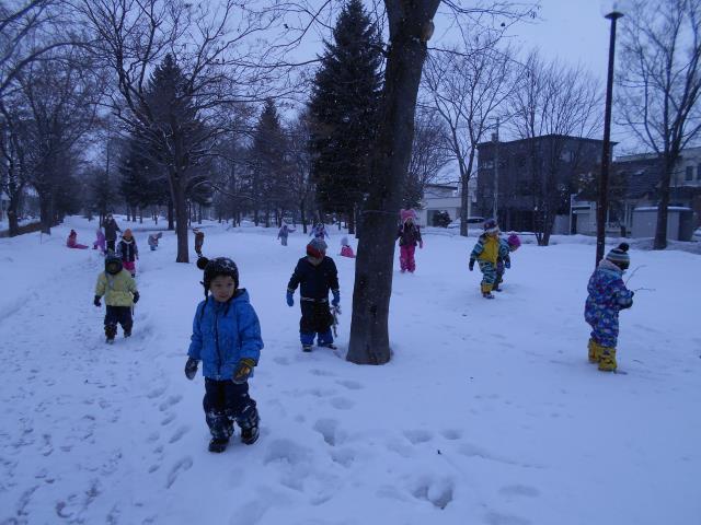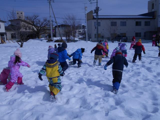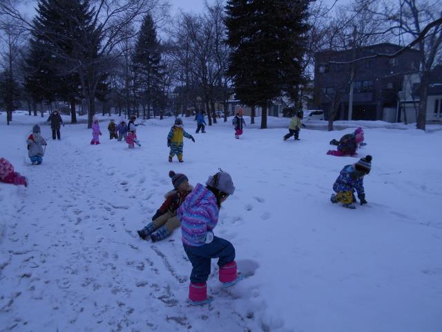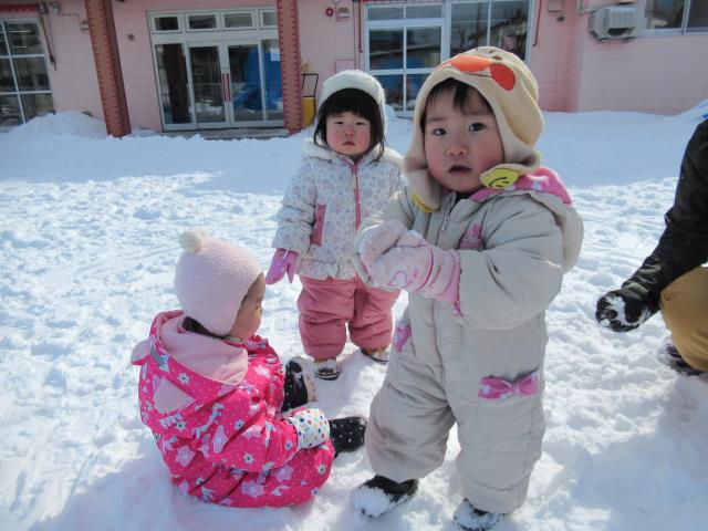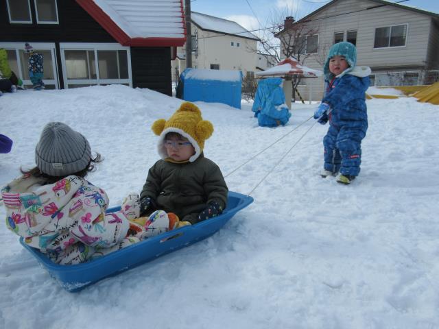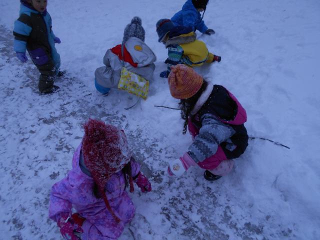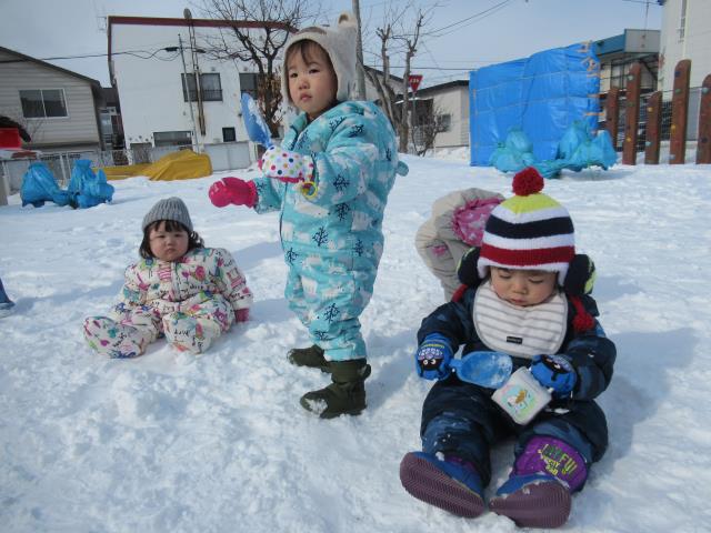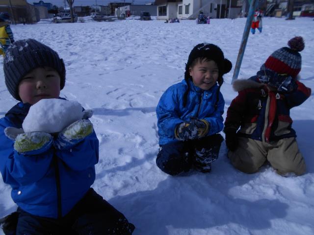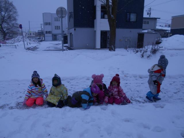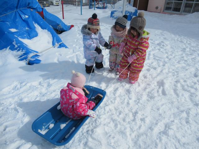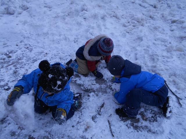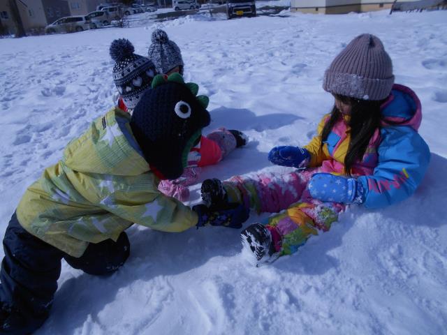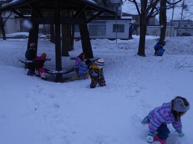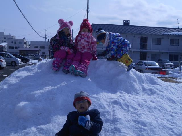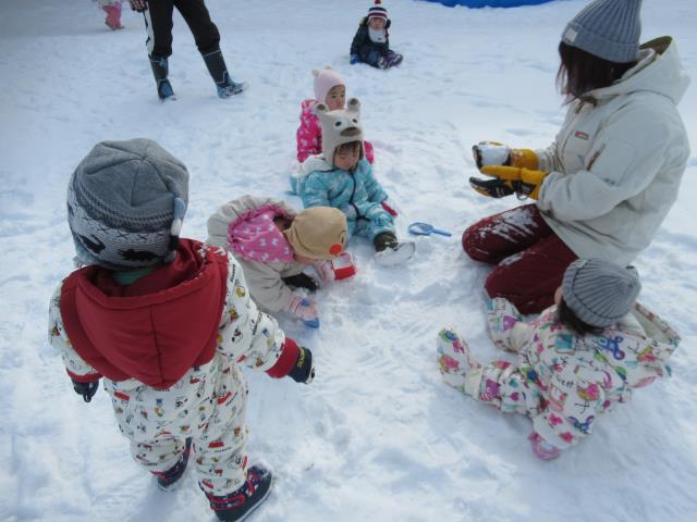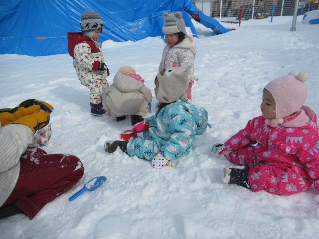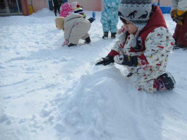 先生とお山を作ったり、スコップで雪をすくって遊んでいましたよ。