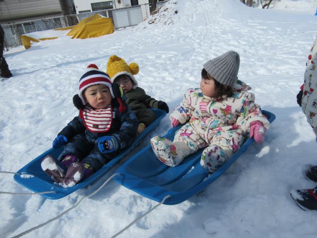 ちゅうりっぷさんもいて、ソリを引いてもらったり遊んでもらいました。