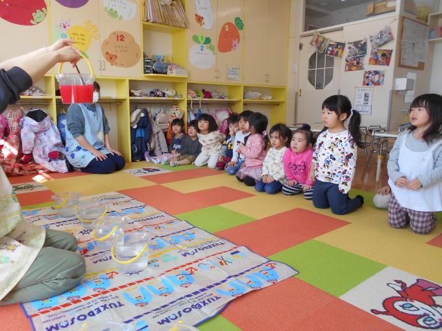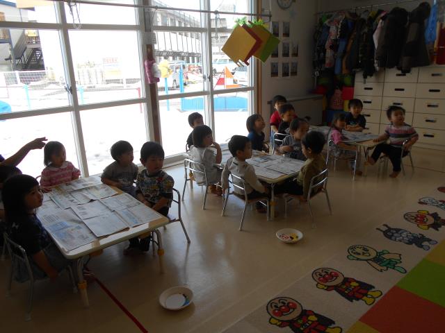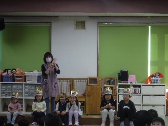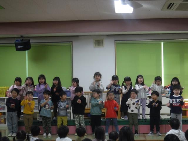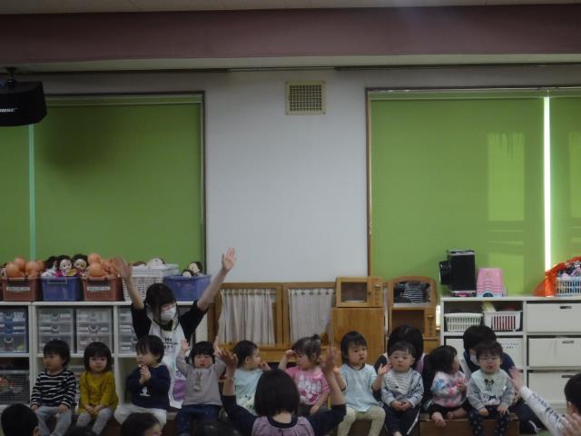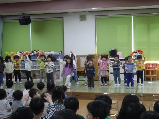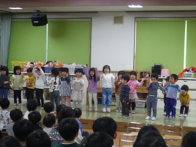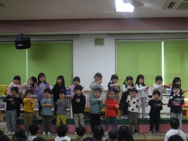 たんぽぽさんは、「ともだちいっぱい」の手遊び歌を元気に発表しました。