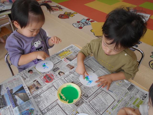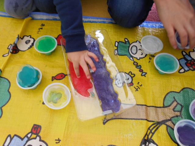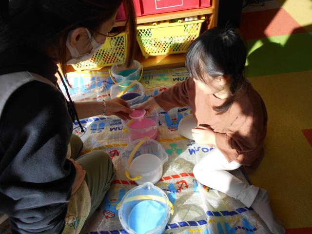 絵の具が混ざり合い、色の変化にも関心を持っているたんぽぽさん。