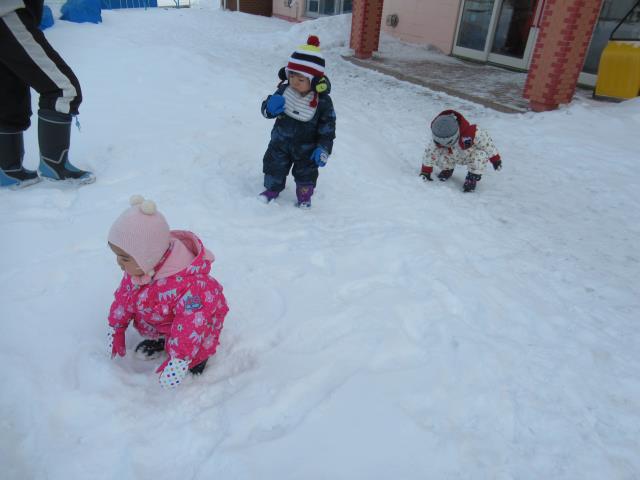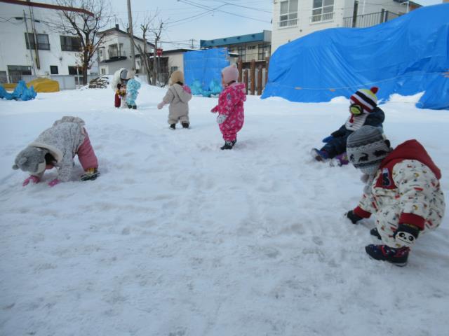 雪の感触にも慣れ、転んでも起き上がって自由に歩く姿もみられるようになりました。