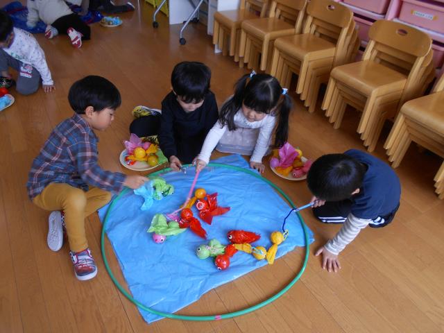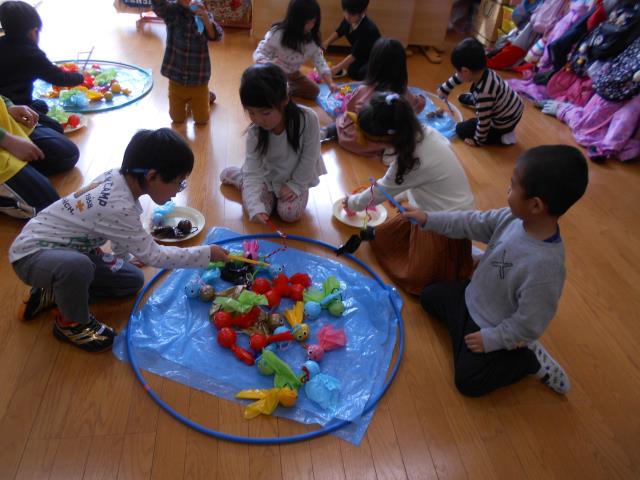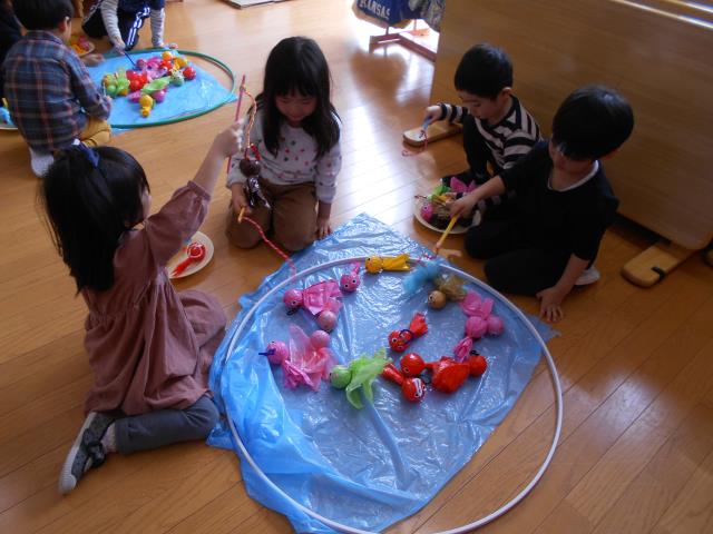 釣った後は魚を焼いたりお寿司にしたりとごっこ遊びが始まりました。