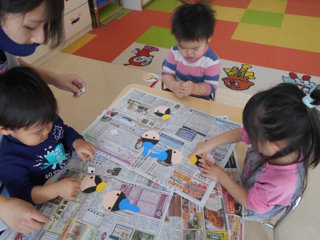 お顔を作ったり、きのこやどんぐり、木を組み合わせて秋の紅葉を作り上げるお友達もいました。