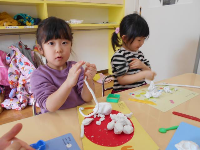 粘土が大好きなたんぽぽさん、自分でイメージしたものを作り上げることを楽しんでいます。