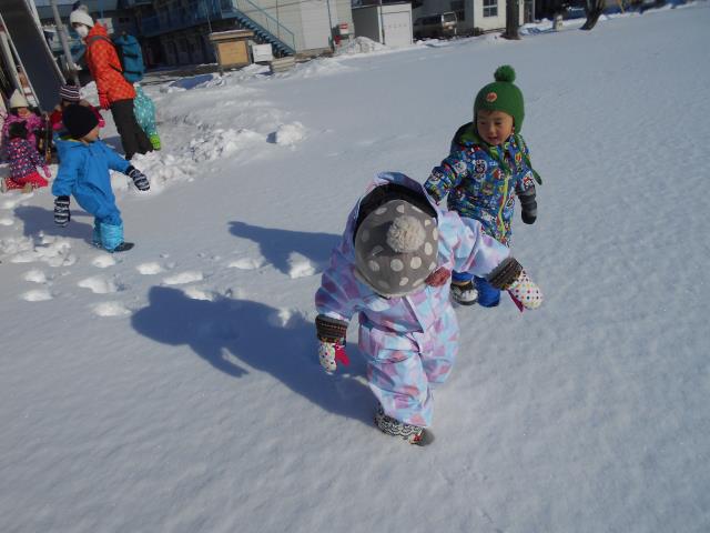 真っ新な雪の上を、ザクザク音が鳴りながら歩くことも楽しかったようです。