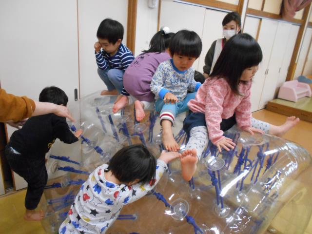 ファンクショントンネルは、手や足の力を使わないとよじ登れませんが、体もしっかりしてきたたんぽぽさん、登れるようになっていました。みんなで遊んで楽しかったね~!!